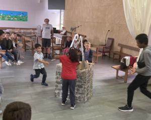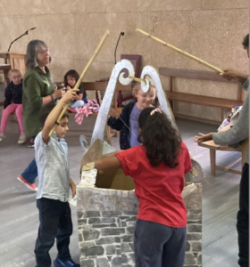 Ainsi, pour la rentrée du catéchisme, les enfants sont tombés nez à nez avec ..un puits. Une pêche aux mots a démarré la séance pour découvrir le fil conducteur de l’année : une série de mots -commençant par la lettre P – et désignant des repères dans la vie chrétienne : paix, pardon, prochain, Pâques, Pentecôte, Père…