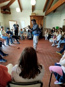 Découverte de cet immense pays du continent africain à travers des expériences simples et concrètes, tel fut l’objectif de cette journée : puiser de l’eau; apprendre des chants nigerians gestués; jouer au jeu du »TEN TEN » (demandez aux enfants ce que c’est) ; découvrir la force de la poésie pour rêver la liberté et la paix avec un choeur parlé; reconnaitre des épices ; goûter aux fruits exotiques … Découvrir qu’il faut marcher longtemps à pied pour chercher de l’eau, aller à l’école ou à l’église. Prendre conscience qu’il est dangereux de vivre sa foi et qu’on peut risquer sa vie. Merci à nos deux témoins chrétiens nigérians : Sunday pour son témoignage et Muyiwa, pour l’atelier chant.