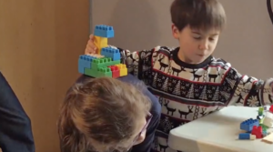Avec les plus jeunes, la découverte de la parabole s’est terminée par un »challenge lego » : bâtir une maison sur une surface instable (le dos du voisin).